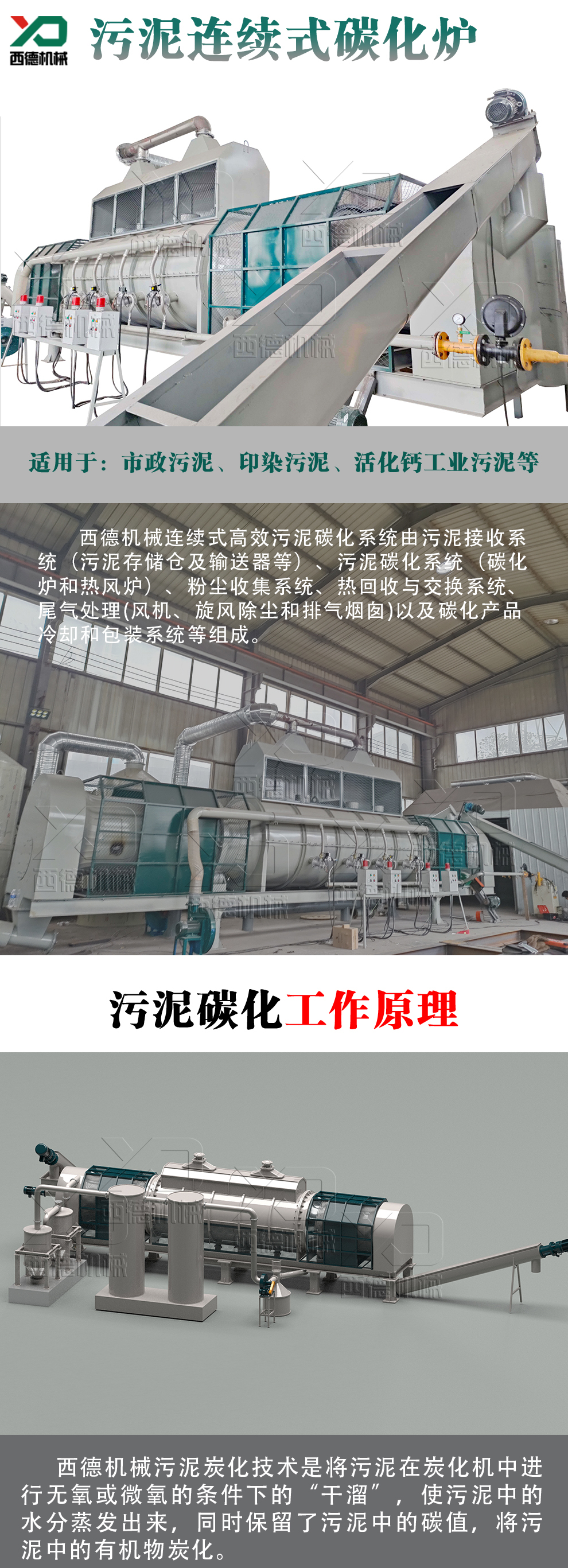 污泥連續(xù)式炭化爐可以用來處理污水廠污泥、市政污泥、河道污泥,工業(yè)污泥等多種類型的污泥,在污泥中含有有機質的情況下,都可以通過炭化熱解的方式進行資源化處理和利用。
